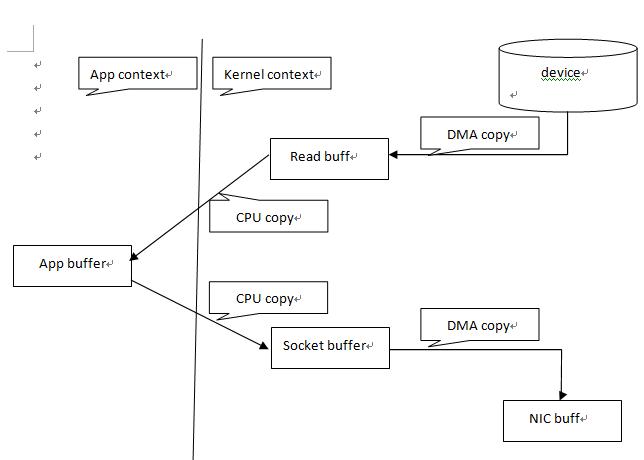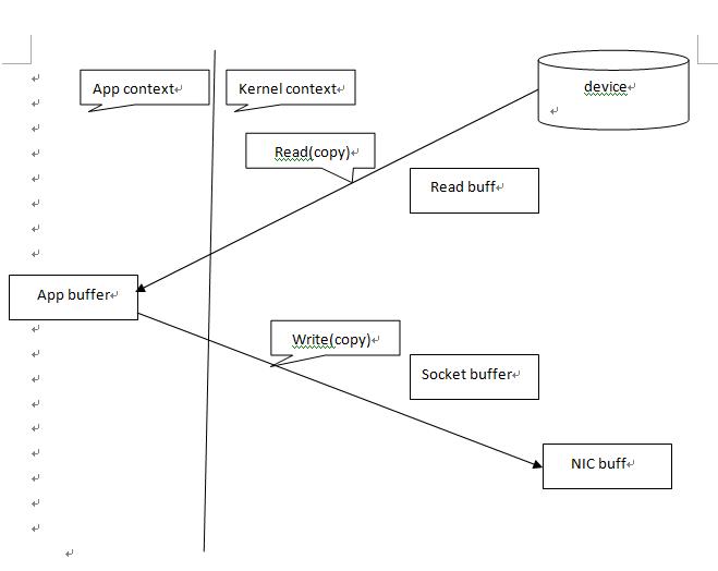 很长一段时间内,数据拷贝的认识仅仅停留在应用程序层,实际上隐藏在背后的数据拷贝行为比想象的要多的多。在传输数据的时候,用户应用程序需要分配一块合适大小的缓冲区来存放需要传输的数据。用户从应用程序中读取数据,然后发送出去,只需要两个系统调用read,write即可完成数据传输工作,应用程序并不知道这个数据传输过程中操作系统进行了多少次拷贝操作。某些情况下,这些数据拷贝操作会极大的降低数据传输的性能。(NIC,Network Interface Card )