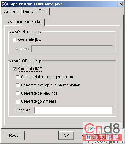 在 Build VisiBroker 页中, 选中 Generate IIOP.