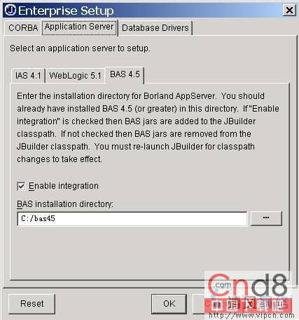 将JBuilder Open Tool bas45.jar 从 C:Bas45consolejbuilderjb40 拷贝到C:JBUILDER40libext 目录下,重启JBuilder.