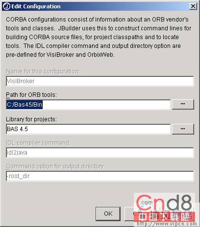 5. 选择Corba页,在Path for ORB Tools中输入C:/Bas45/bin