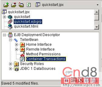 在左下的结构窗格中展开TellerBean ,点 Container Transactions.