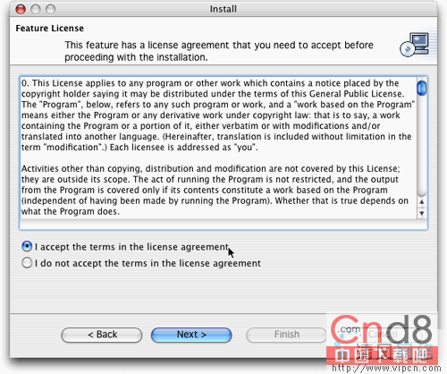 现在已经完成安装,你需要退出,然后重新启动Eclipse以使所做的更改生效。看上边的对话框似乎说能够自动重新启动Eclipse。,以我的经验,Eclipse只会退出,还是需要你自己手工重新启动。这可能是Max OS X平台上Eclipse 2.1的一个局限。Eclipse 3已经许诺把对OS X的支持列入第一级别。无论如何,这只是个小问题。假如你需要重新启动Eclipse,现在就可以这样做。安装完之后,接着需要对其对其进行配置,以便在项目中使用。