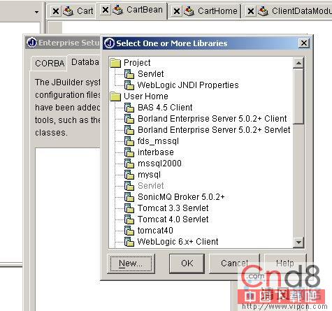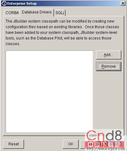 同 weblogic 一样,在进行此项配置之前,先将欲使用的 数据库JDBC 驱动 Jar 文件放到 D:JBuilder7libjdbc 目录下(建议这样做,没有jdbc目录就建一个呗)