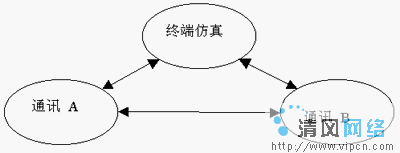 一般来说,串行通讯的双方都必须遵守相同的通讯数据格式,编写各自的通讯程序。由于通讯程序的编写涉及到通讯的双方,所以任意一方通讯程序的错误都将导致通讯的失败,也将给编写和调试通讯带来许多困难。笔者通过反复试验发现,利用Windows终端仿真通讯程序模拟通讯双方中一方,然后调试通讯双方中另一方与Windows终端仿真通讯,当通讯两方都与Windows终端仿真调试成功后,即可实现它们之间的串行通讯了。这样可以最大限度地减少串行通讯程序的调试工作量,提高程序开发速度(见图4)。假设目前要设计两个串行通讯系统,分别是PC机显示Palm数据系统和Palm显示PC端数据系统,它们的具体实现如下: