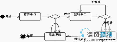 可以将PC端串行程序看为类似超级终端的应用程序。PC端串行程序完成的工作主要有,按照设定的传输速率(必须与Palm端的串行通讯参数一致)打开串行通讯端口,然后启动线程,并且监听串行通讯端口数据。接收到数据后,将数据显示。具体程序步骤如下: