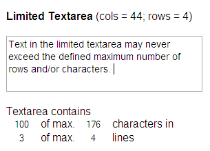 - onPaste 和 onCut: 但文本被粘贴到TextArea或者删除时调用脚本checkLimits.