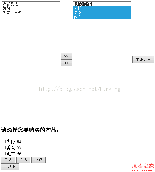 JavaScript实现的购物车效果,当然这个效果可以运用在好多地方,比如好友的选择,人力资源模块等等,需要的朋友可以参考下