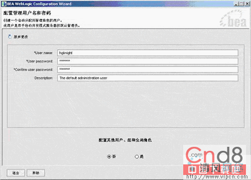9.输入“User name”和“passWord”,单击“下一步”,需要8位,简单一点我就都输入hgknight。
