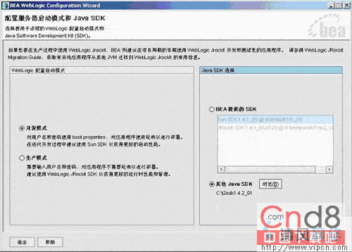 12.Bea WebLogic默认安装了JDK1.4.1,我要使用JDK 1.4.2。选择“其他Java SDK”,点击“浏览”指定J2SDK 1.4.2安装目录。单击“下一步”。