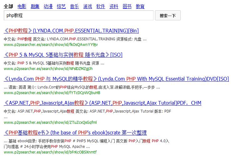 电驴上的资源下载链接大部分被关闭了,有些好的资源下载不了,有点可惜。后来发现在一些小型的资源网站上可以找到对应的链接,于是花了点时间在整理出来,并做了一个比较友好的搜索接口