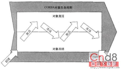 要注重, CORBA对象的创建与删除和它们的激活和冻结之间有根本的区别。对很多CORBA对象的类型, CORBA对象生命周期会包括多个伺服对象的激活和冻结,如图1所示。