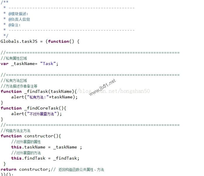 解释一下:模块级别的js 主要包括自己的私有属性和方法,及对外暴露的js属性和方法。这里我们默认凡是内部私有的前面都加“_”,最后决定哪些方法和属性暴露出来,是通过构造方法constructor来对外暴露。