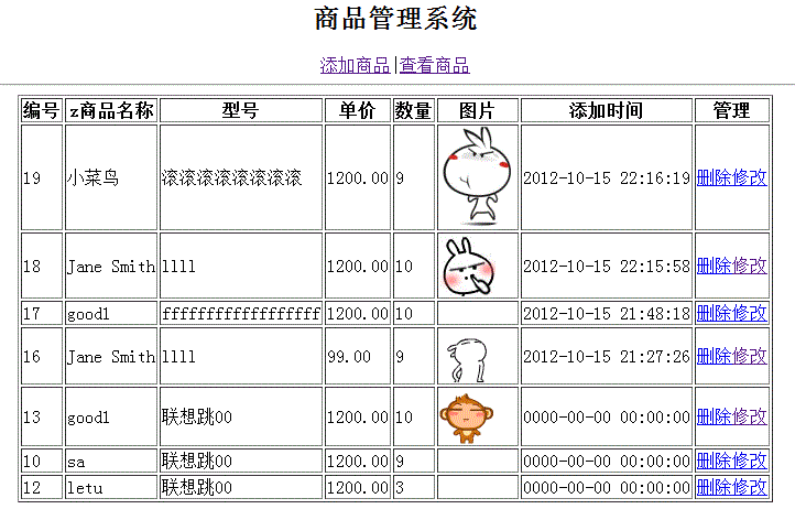 使用PHP语言开发一个商品管理系统,使用MySQL作为后台数据库,其中商品天添加、显示、删除和修改功能。