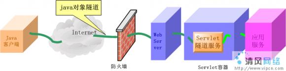 基于Java平台的企业应用可以通过Java隧道技术实现应用在因特网上部署。Java隧道技术用现有的Web Server和Servlet容器就可以建立Java消息隧道和远程方法调用。由于基于Http协议,所以Java隧道是防火墙透明的隧道。Java隧道技术对于基于Java平台的因特网企业应用是一个不错的选择。