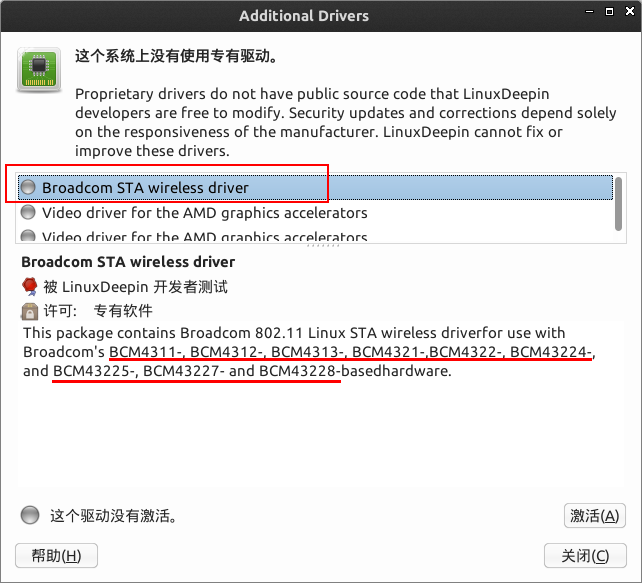 中你可以看到你的网卡型号,比如我的就是broadcom bcm4313,然后在附加驱动中,看到某个附加驱动的描述