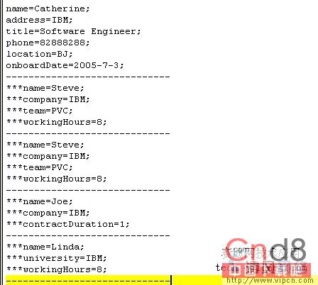在这个例子中,我们将一个Employee对象的部分内容输出到文件C: est.output中。图8显示了这个例子的输出结果。