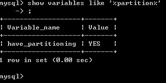 在MySQL中,并不是所有的数据库版本都支持分区管理。为此数据库管理员首先要做的就是,确认自己所采用的版本是否支持这个功能。如果支持的话,则可以在后续设计与维护时利用分区的特性来提升系统性能、提高数据安全。反之,则不行。要判断所使用的版本是否支持分区功能,可以通过系统命令来实现。如下图所示:
