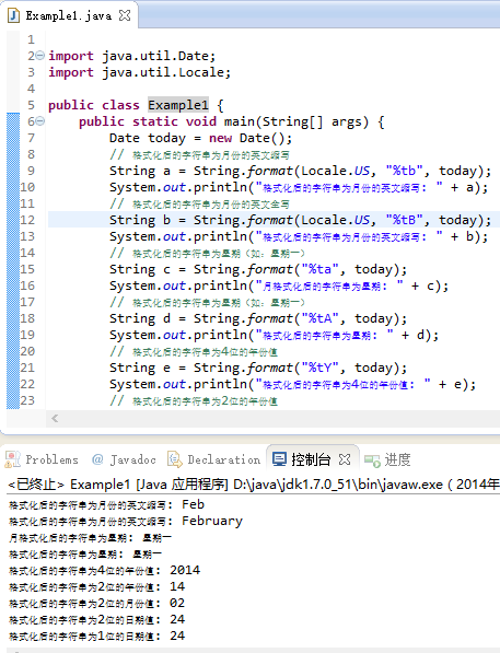 在输出日期信息时,经常需要输出不同格式的日期格式,本实例中介绍了String字符串类中的日期格式化方法,实例使用不同的方式输出String类的日期格式参数值,组合这些值可以实现特殊格式的日期字符串。