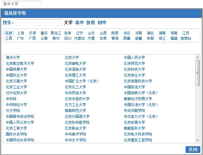 防开心网获取各个地区的学校(大学,高中,技校,初中),搞了两天才搞下来,不容易啊!