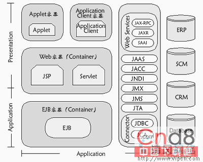 通过这四个容器,J2EE能够灵活地实现前面描述的企业级应用的架构。