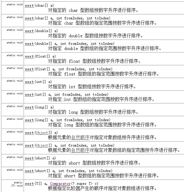 比如对于排序操作的sort()函数,重载了多种静态函数以适应不同情况下的需要。