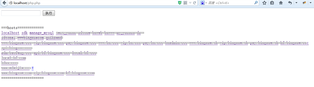 在开发项目的过程中绑定的域名过多的时候,难免会忘记一些,这个脚本就是列出这些hosts,可以加入到localhost的默认页面中