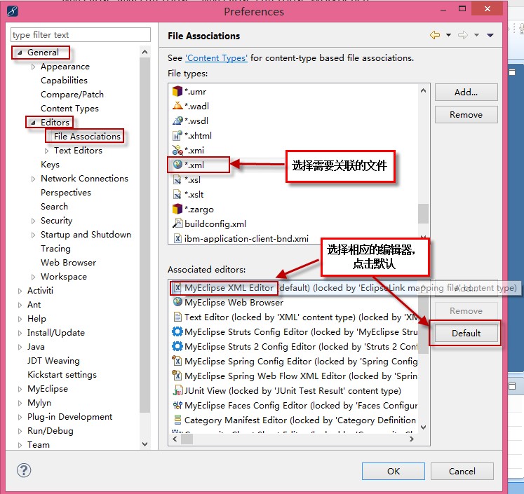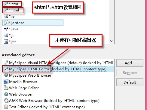 许多格式类型的文件,我们一般希望某种特定的方式打开,比如html文件,我们一般都是希望以源码的方式在MyEclipse中打开。下面介绍文件默认打开方式的设置。