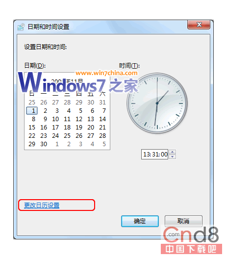 3、打开的日期和时间设置窗口里面,还要再点下“更改日历设置”