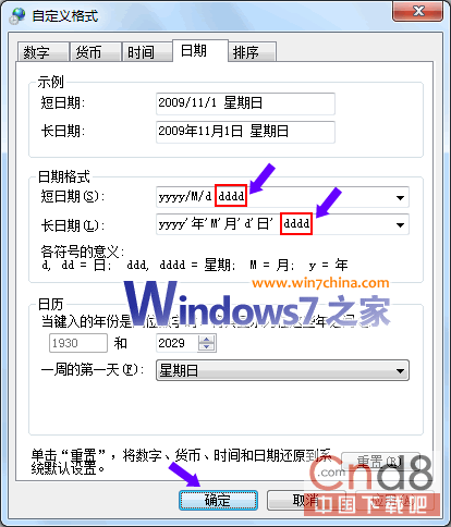 好了,短日期和长日期的后面,都加上个空格和dddd,点击确定,搞定!