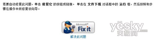 微软同时还在官网上设立了“微软软件问题自动修复Fixit中心”,可以根据用户的故障为用户提供解决方案,用户只需要点击网页上的“Fix it”图标,便可以自动修复这些故障。