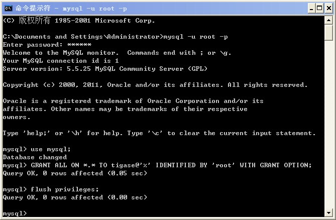 让MySQL重新加载权限,使赋予的权限能够马上生效。