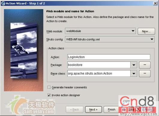 由于我们的Action需要完成用户密码验证的业务,并根据结果转换到不同的页面中,所以这个LoginAction是一个普通的Action,故我们选择org.apache.struts.action.Action。