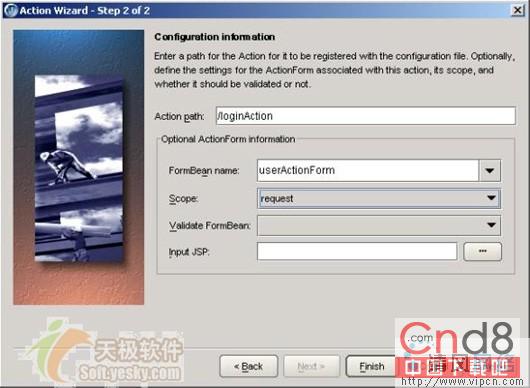 在FormBeanName中为UserActionForm指定一个名字,一般接受JBuilder所提供的默认名即可。这个名字将在struts-config.xml文件用来命名UserActionForm。