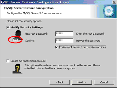 如果打钩项为Modify Security Settings,那么用户默认就是root(画红圈处),后面两个文本框中是root用户的密码,这也就解释了为什么用select * from mysql.user查出的用户只有root了。