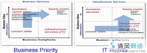 但是,企业和IT操作团队的成员获得流程竞争优势的方法往往有很大区别。例如,一些企业操作团队喜欢演示速效方案(quick wins)来验证一种方法,而IT操作团队则宁愿构建基础架构。两个团队的正确答案很可能是一种SOA方法。