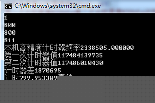 printf("第一次计时器值%I64d\n第二次计时器值%I64d\n计时器差%I64d\n", c1, c2, c2 - c1);