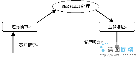 为了使用SessionBean进行登录确认处理,同时利用Bean的监听功能对用户的登录时间进行监听,超过一定时间,自动切断用户登录连接,让用户进行重新登录。在应用系统中,用户登录后的权限控制是一个重点,我们在使用J2EE框架结构的过程中,使用SERVLET的过滤功能来实现权限的控制,具体的实现结构如下: