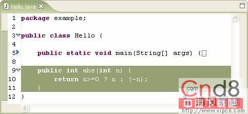 我们创建一个Java工程,添加一个example.Hello类,首先我们给Hello类添加一个abs()方法,作用是返回绝对值: