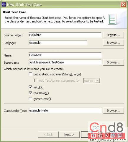 Eclipse会询问是否添加junit.jar包,确定后新建一个HelloTest类,用来测试Hello类。