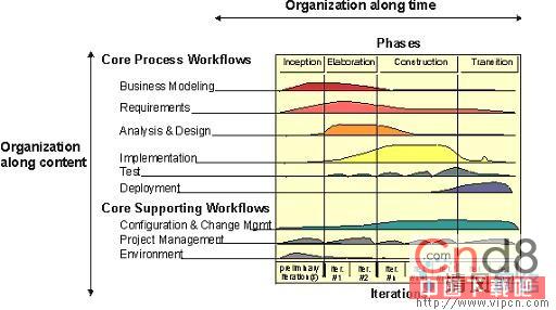 软件开发过程模型以 Rational Unified Process (简称 RUP )为代表,如下图