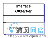 抽象观察者角色的实现实际上是最为简单的一个,它是一个Java接口,只声明了一个方法,即update()。这个方法被子类实现后,一被调用便刷新自己。