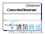具体观察者角色的实现其实只涉及update()方法的实现。这个方法怎么实现与应用密切相关,因此本类只给出一个框架。