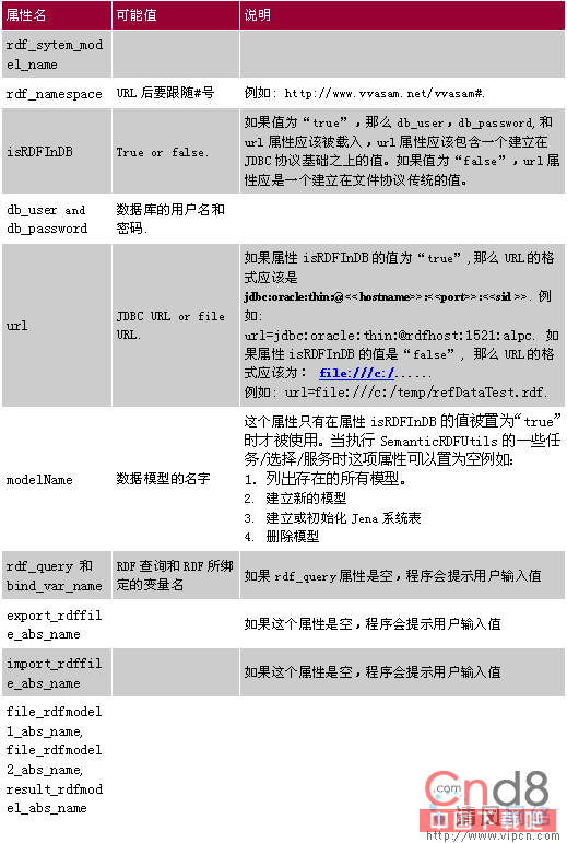SemanticRDFUtils脚本使用SemanticRDFUtils.properties文件储存配置信息。下表给出了配置信息中的所有属性:
