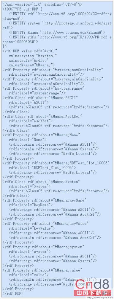 图5和图6显示的是Protégé's类标签和实例标签,分别表示了列表1和列表2中的.rdf和.rdfs文件。这些文件使用Protégé's schema 格式创建。