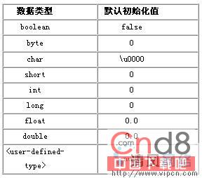 一般说来,假如实例变量在定义的时候没有被显式的初始化,那么 Java 将变量自动初始化为 "似零" 的值,具体值由变量的数据类型决定: