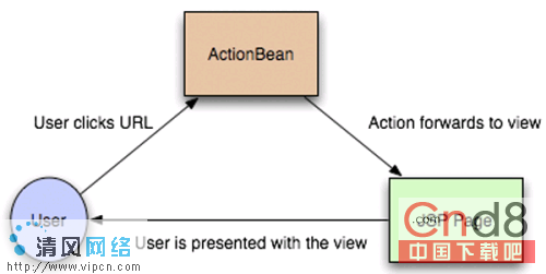 Controller类是一个实现了Stripes特有接口ActionBean的POJO(Plain Old Java Object,译注:读破粥)。所有的Stripes动作类都要实现这一接口以让StripesDispatcher servlet在运行服务时为其注入一个ActionBeanContext对象。ActionBeanContext对象可以让你存取的对象如request、response、和servlet context等servlet API。大多数时候在Stripes应用中是不用读取这些底层API对象的。