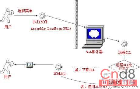 首先,[Assembly].LoadFrom这行代码利用HTTP协议下载一个DLL。在本例中,URL指向localhost,但它同样也可以指向一个远程服务器,例如http://www.mycompany.com/myapp。这就是说,我们只要一行代码,并指定一个适当的URL,其余工作就全交给.NET了,不管程序集是本地的还是远程的。