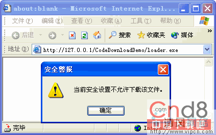 ⑷ 启动IE浏览器,输入下面的URL:http://localhost/CodeDownloadDemo/loader.exe。