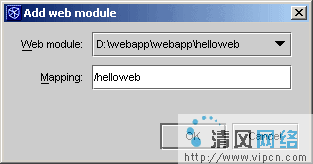 现在,你可以看到,在src/web结点下有一个新的结点,右键单击这个新结点选择add web module。这个行为可以让你添加Web 模版到组中,既然这样,将类型/helloweb映射到Web模版src/web中。这样,就让Web服务器知道/helloweb指向默认路径。