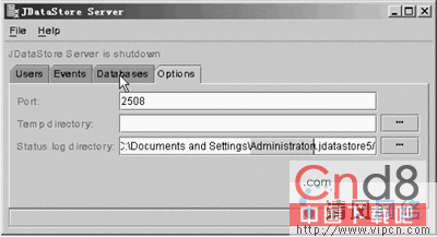 1. 在JDataStore Server中设置端口号。在Options属性页中的Port文本框中填入想要使用的端口号。在Temp Directory中可以指定查询引擎所要使用的临时文件目录。在Status Log Directory中指定JDataStore Server的日志文件目录。